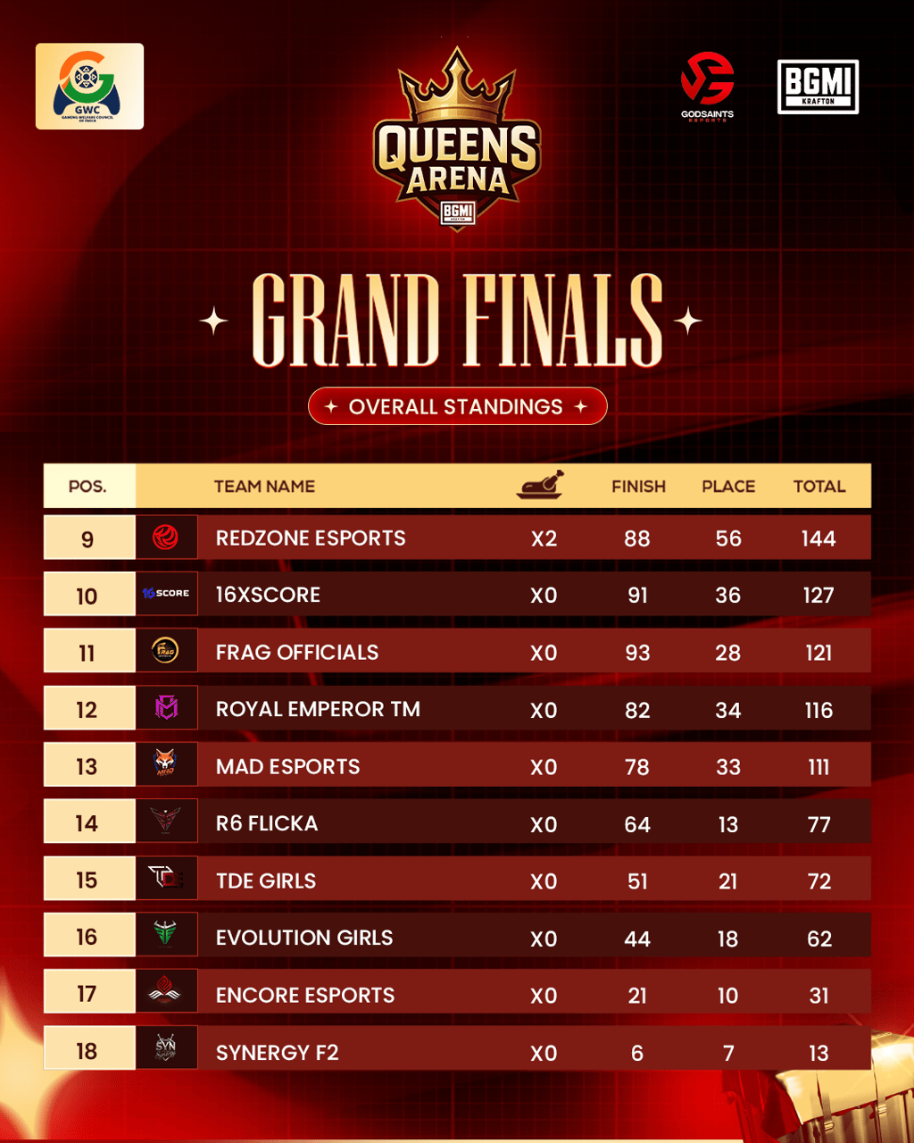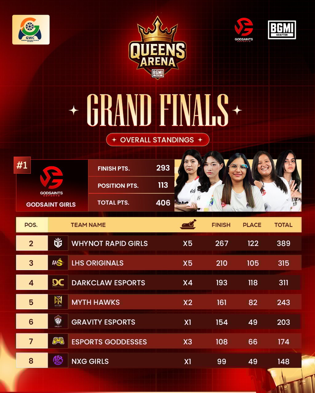 Top finalists also included Darkclaw Esports, Myth Hawks and Gravity Esports, reflecting the growing strength and depth of India’s emerging women-led lineups.